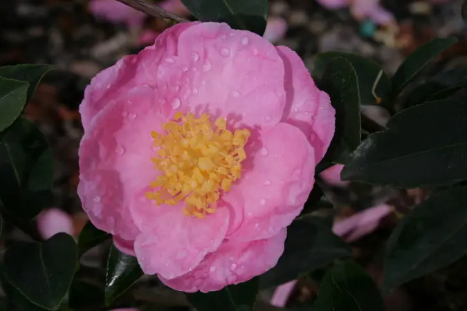 A classic, vigorous camellia with single, shell-pink blooms and dark green foliage. Flowering in early to mid-autumn, it brings early colour to the garden. Excellent as a screen, hedge, or background plant.