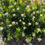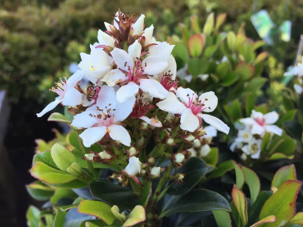 A hardy, evergreen shrub producing clusters of pure white flowers in spring and sporadically throughout the year. With its neat form and dark green foliage, Snow Maiden is perfect for hedging, pots or mixed borders. Suits full sun and handles dry periods well once established.