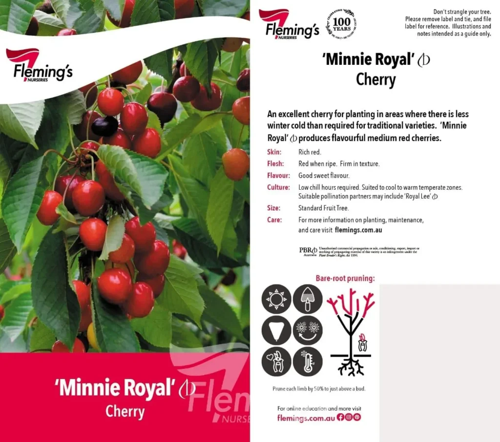 A highly sought-after low-chill variety that produces lovely, sweet cherries. Requiring just 200–400 chill hours, it’s well suited to Perth’s warmer climate and can be grown successfully in many inland suburbs. Best avoided in coastal areas, where chill hours may be too low for reliable fruiting.