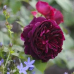 This rose produces deep, velvety crimson blooms with lighter outer petals. Initially large and cup-shaped, the flowers gradually become shallowly cupped over time. A strong Old Rose fragrance fills the air, with delightful fruity notes of blackberry, blueberry, and damson.