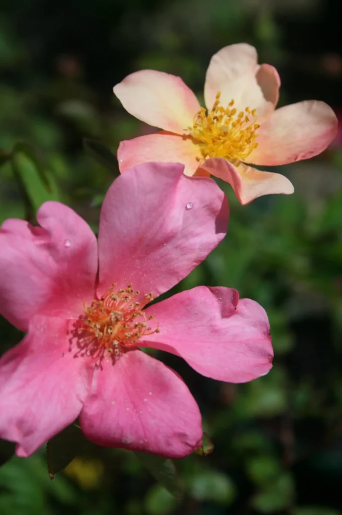 An open, spreading bush with a charmingly wild habit, this rose produces a continuous display of single blooms that shift from coppery yellow to pinky crimson as they age. The flowers are held on dark plum-coloured stems and framed by dark green-grey foliage with slim, pointed leaves. Vigorous and healthy, this variety brings colour, movement and character to the garden throughout the season.