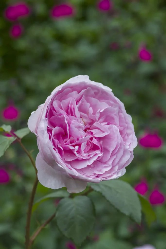 Pretty buds open into beautiful, cupped rosettes in a soft, even mid-pink. These blooms emit a light to medium fruity fragrance and offer long-lasting flowers throughout the season.