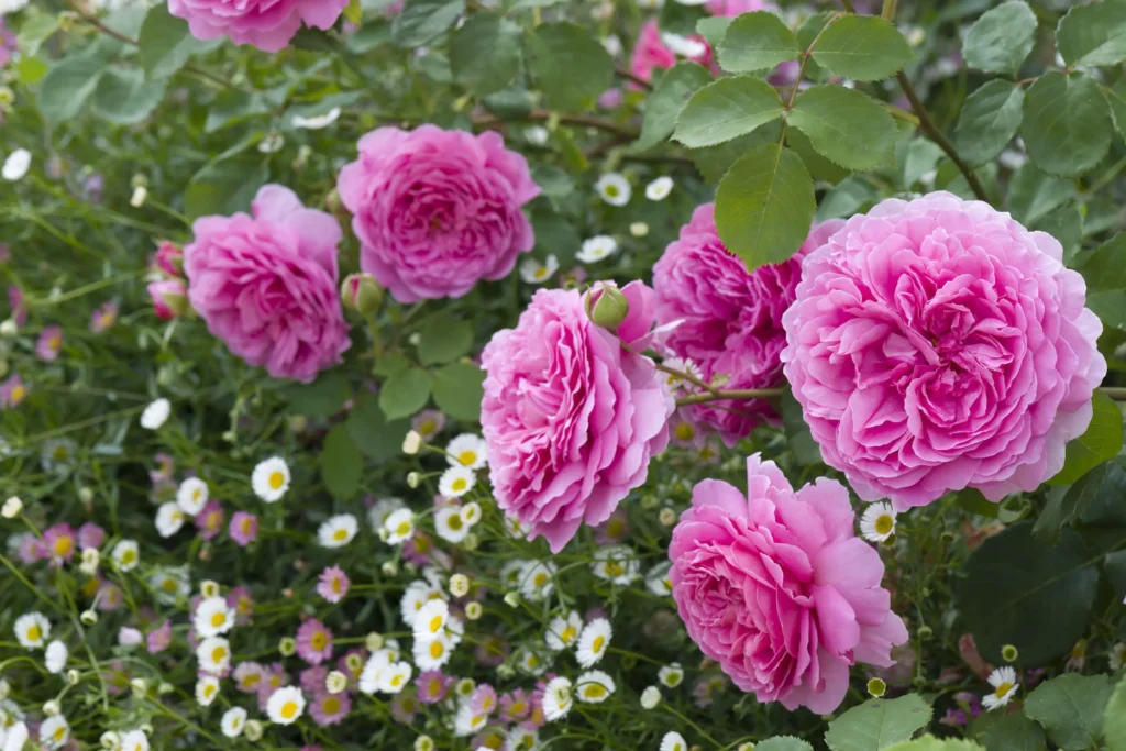 The large, vibrant pink flowers are full-petalled and deeply cupped, exuding elegance. Despite their size, they hold a graceful poise, perfectly balanced on a well-rounded shrub.