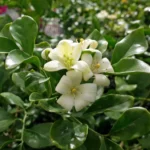 A dense, evergreen shrub with glossy leaves and beautifully scented white flowers through the warmer months. Often used as a formal hedge or screen, it responds well to pruning and grows in full sun to part shade. Prefers well-drained soil and benefits from regular watering during dry periods.