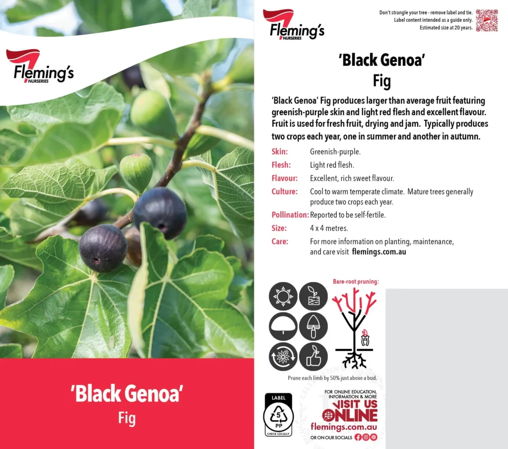 A fast-growing, medium-sized deciduous fig tree that produces large fruit with greenish-purple skin and rich dark red flesh. Known for its excellent flavour, it is perfect for eating fresh, drying or making jam. A regular and heavy bearer, this variety often produces two crops each year, one in early summer and another in late autumn. It is an ideal choice for Mediterranean-style or edible gardens.