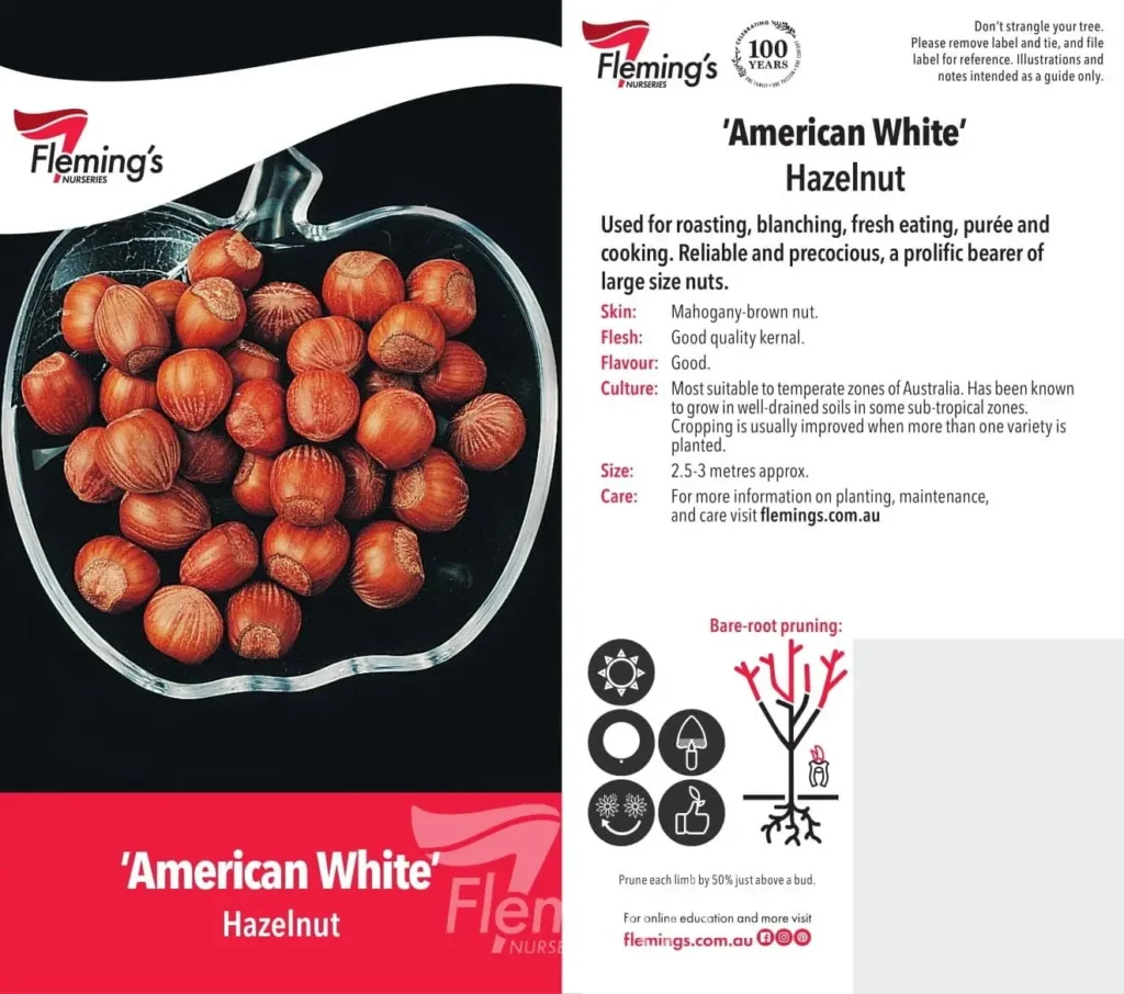 A named cultivar that produces a prolific crop of large, mahogany-brown nuts with excellent flavour. The sweet, good-quality nuts can be enjoyed fresh or used in cooking, roasting, blanching or pureeing. Hazelnuts are naturally high in protein and make a delicious, versatile addition to the home orchard