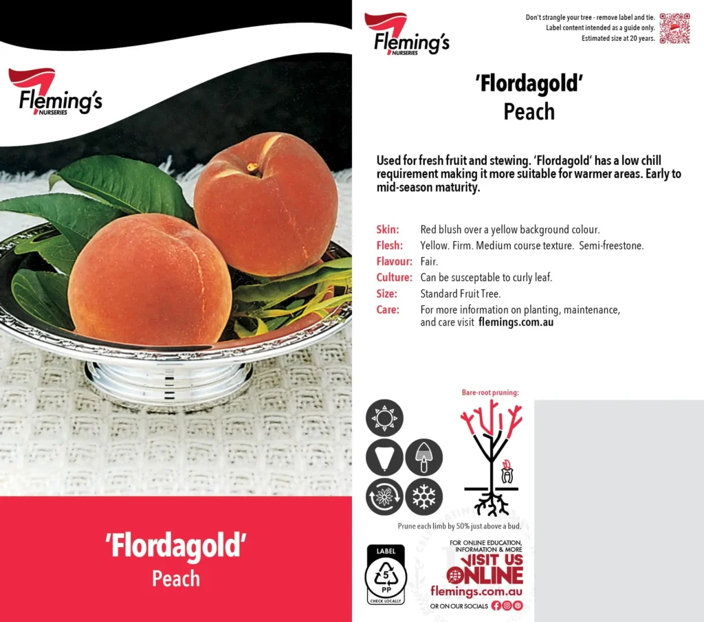 A reliable performer for warmer and coastal climates, this early to mid-season peach has a low chill requirement and is self fertile, making it ideal for home gardeners in mild regions. The medium to large fruit has firm, juicy yellow flesh and a red blush over golden skin. Its semi-freestone nature makes it easy to prepare for fresh eating, stewing, or preserving. The fruit typically ripens around mid-December. This tree grows well in full sun and can be planted in the ground or in large containers.