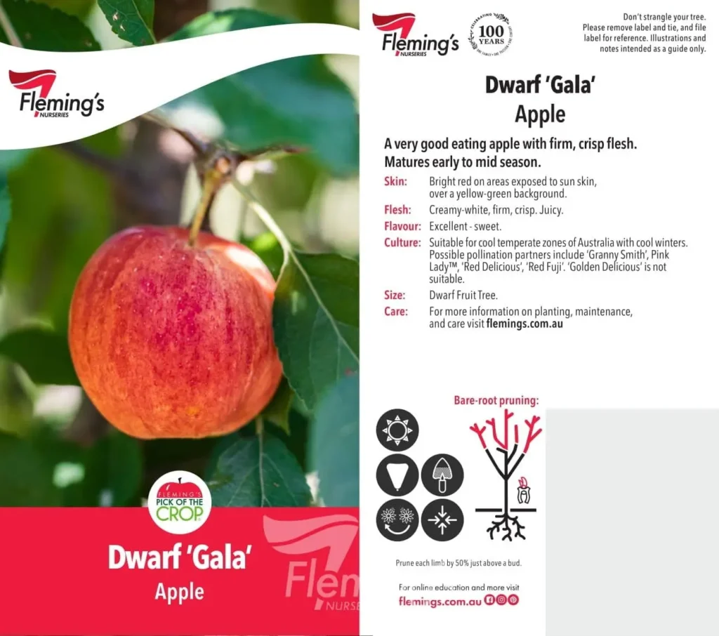 This attractive dwarf apple produces medium/sized, round to oblong fruit with red striping over a light background. The creamy white flesh is firm, crisp, and juicy with a sweet, refreshing flavour. Best enjoyed fresh, it’s a reliable variety for home gardens.