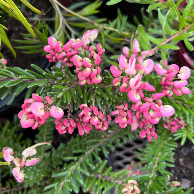 A soft, compact, spreading grevillea with grey-green foliage. It produces masses of pink and white waxy flowers for most of the year, creating a striking display. Extremely drought-hardy, this versatile plant is ideal for mass planting as a ground cover, along path edges, in rockeries, or on embankments, adding year-round colour and texture to the garden.