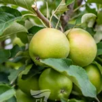 This dwarf variety of the popular heavy cropping tree produces large yellow-green apples with a crisp, firm texture and sprightly flavour that sweetens if left to ripen on the tree. Excellent for stewing, cooking, or eating fresh. Cross-pollinates well with any other apple variety,
