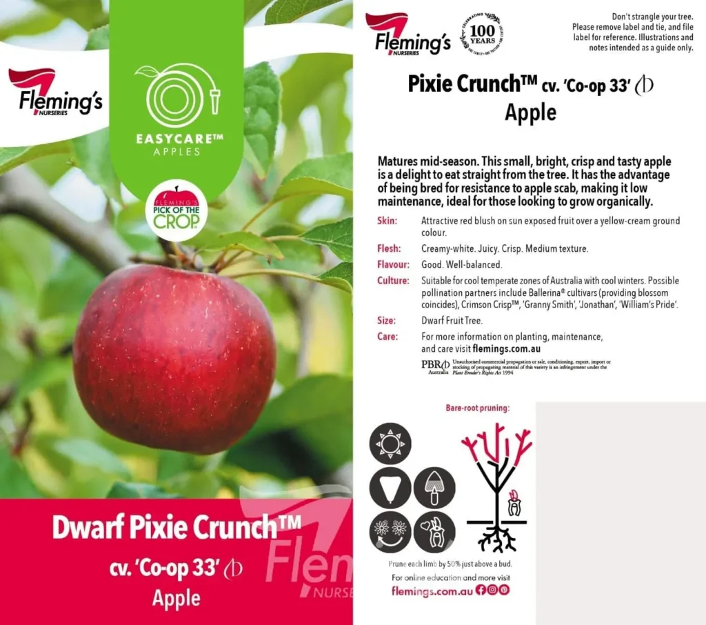 This bright and tasty dwarf apple produces small to medium fruit with a red blush over yellow-cream skin, particularly on sun-exposed areas. The creamy white flesh is juicy, crisp, and has a well-balanced flavour. Bred for it’s disease resistance, this tree is a low-maintenance choice ideal for home gardeners.
