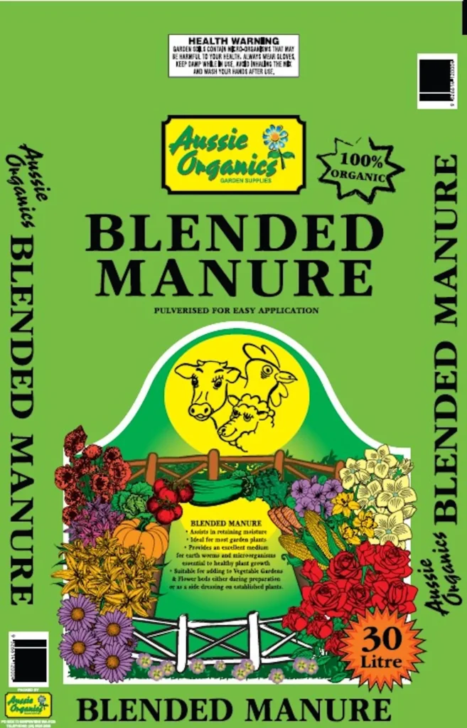 Aussie Organics Blended Manure encourages vigorous and healty plant growth. It is composted and screened and can be used as a general fertiliser, soil conditioner or soil improver. It’s a natural and organic product that will encourage worm activity in the soil, which in turn improves soil structure.