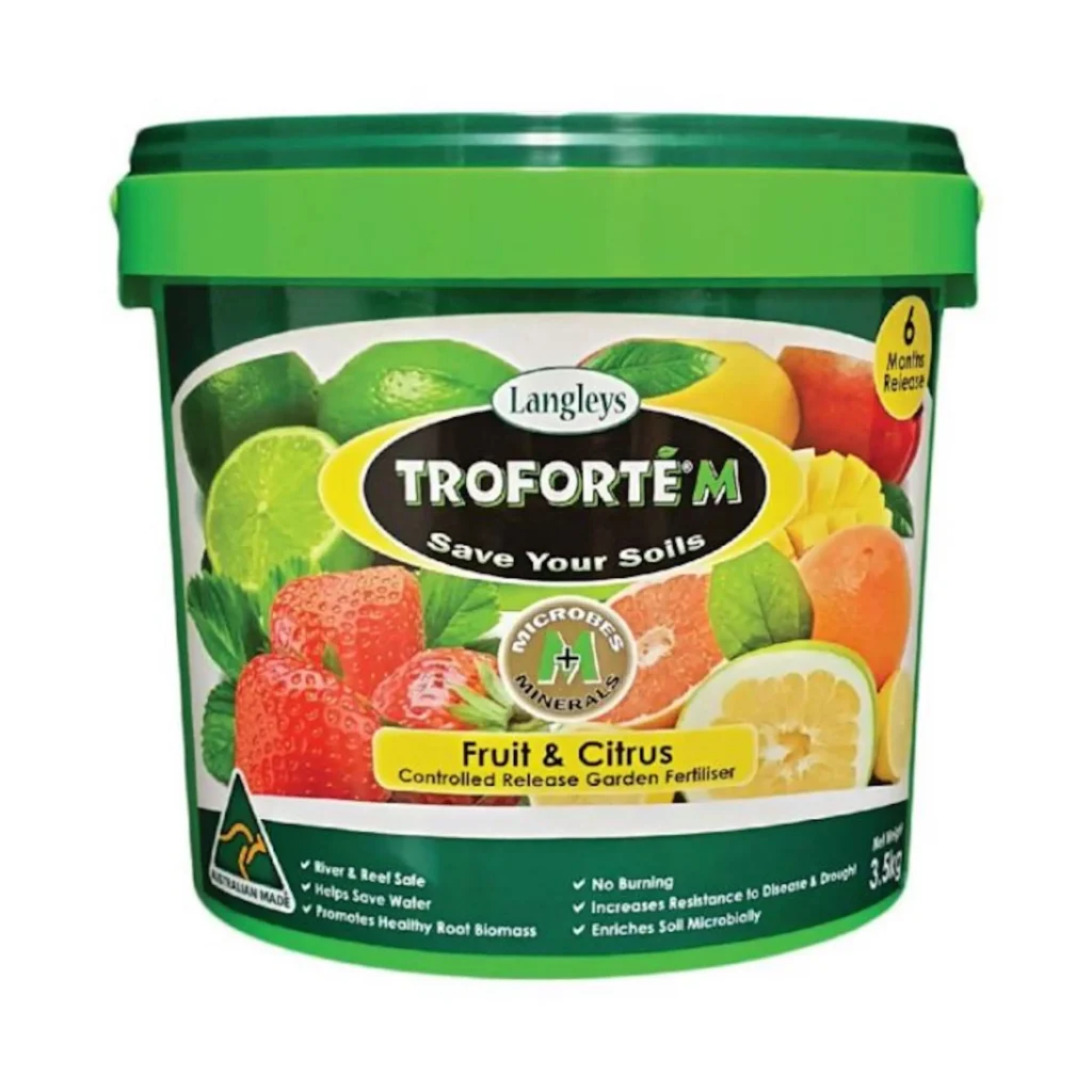 Troforte M Fruit & Citrus uses a unique combination of controlled-release fertiliser, minerals and a specially selected suite of beneficial soil microbes and fungi. Designed specifically for Fruit and Citrus trees to enhance fruit taste and produce better yeilds.