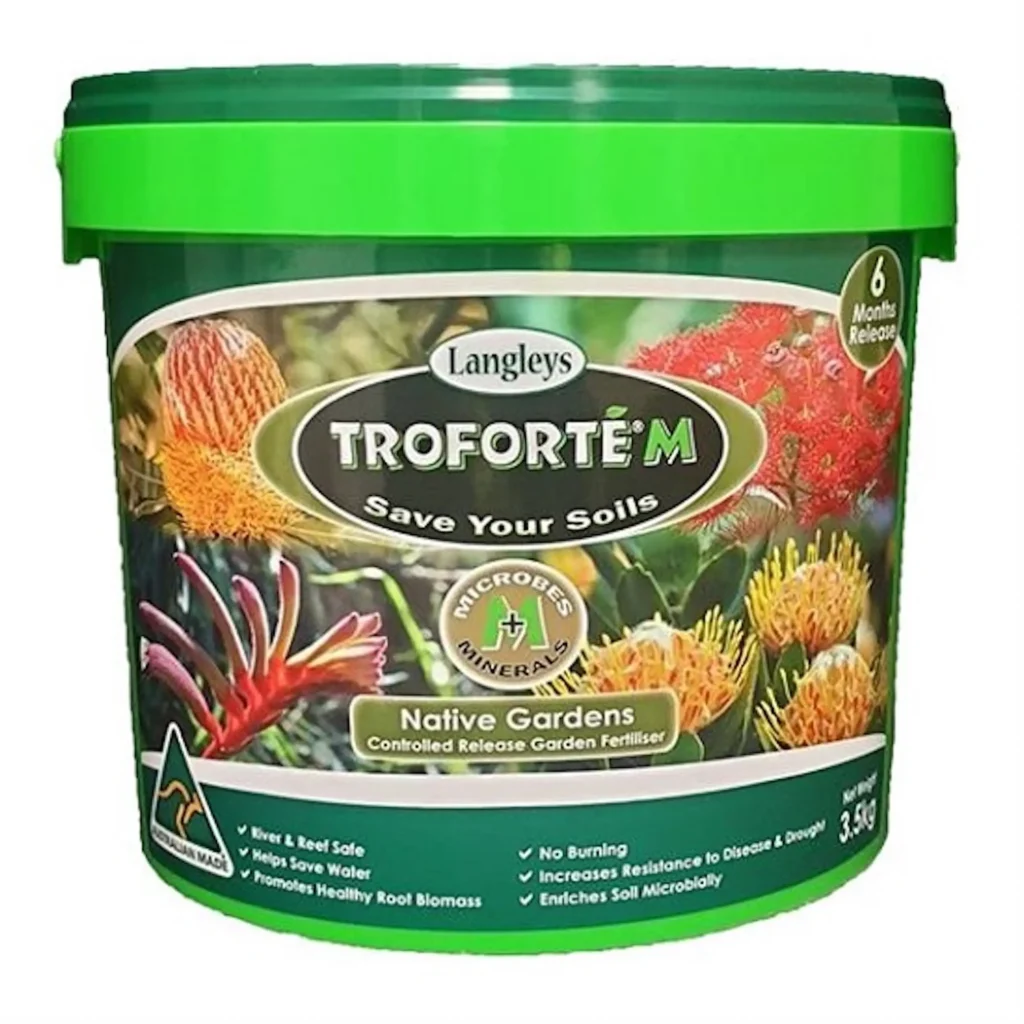 Troforte M Native is a controlled release garden fertiliser tailored specifically to the needs of Australian native plants and other phosphorus-sensitive varieties including proteas.