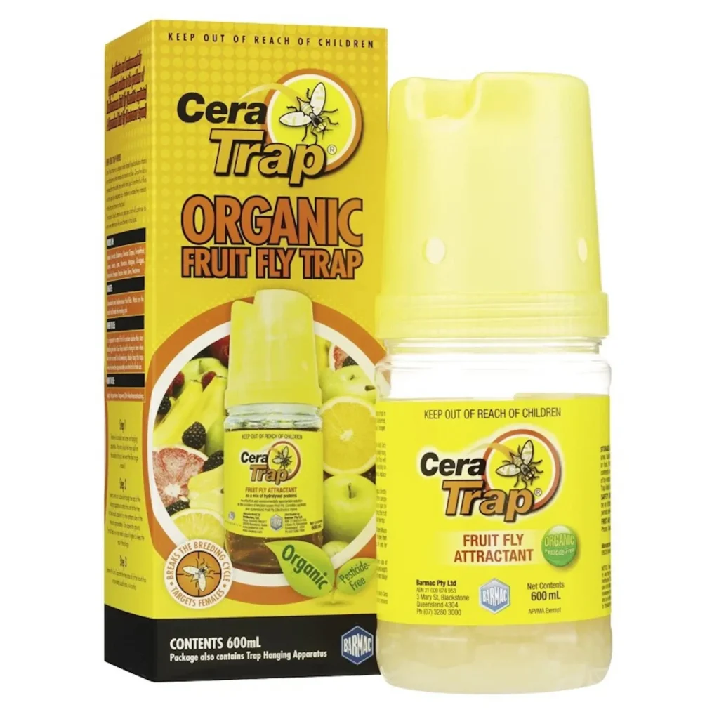 The Cera Trap Organic Fruit Fly Trap is an innovative, highly effective method to assist in the management of fruit fly. Cera Trap contains a unique protein based liquid solution that is very attractive to both female and male fruit fly.