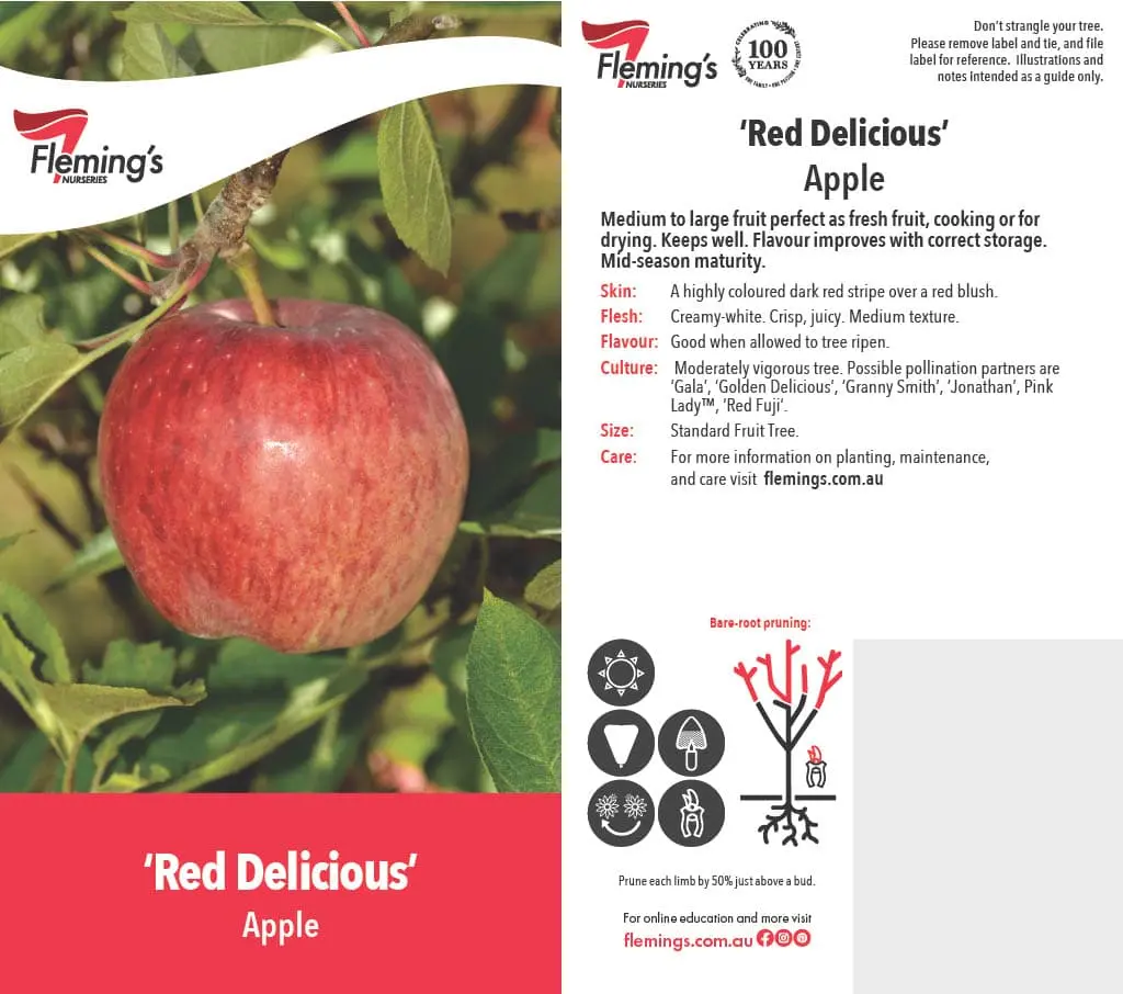 An excellent, bright red apple with large, attractive fruit and distinctive crown shaped markings on the base. The greenish/white flesh is crisp with a medium texture and offers good eating qualities, making it a reliable choice for fresh enjoyment