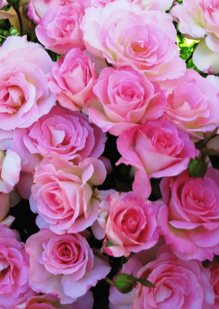 Medium-large, semi-double blooms appear in clusters of up to ten, featuring soft pink petals edged in cream with buff yellow centers. The wavy petals create a delicate, romantic look, while the flowers maintain a classic rounded shape. Known for its repeat flowering, excellent disease and heat resistance, this variety also makes a long-lasting, showy cut flower.