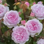 Pretty buds open into beautiful, cupped rosettes in a soft, even mid-pink. These blooms emit a light to medium fruity fragrance and offer long-lasting flowers throughout the season.