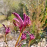 This Kangaroo Paw displays a stunning mix of bright red and emerald green flowers on slim red stems, standing out against its soft green foliage. Flowering from spring to summer, it adds vibrant colour and bold contrast to any garden setting.